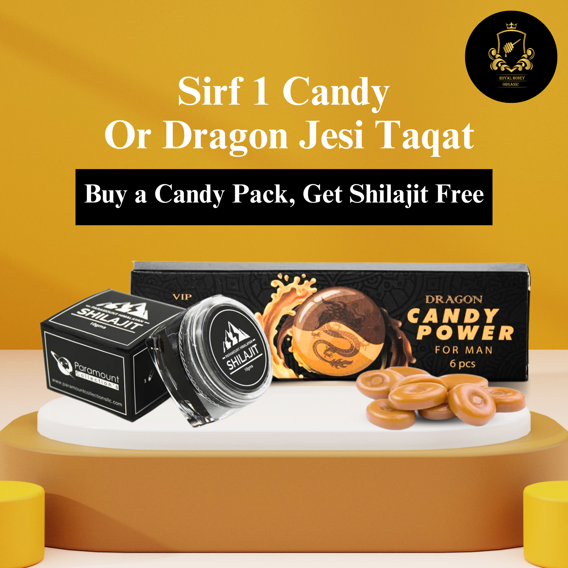 DRAGON Candy Power For Men with Pure Honey, Ginseng, Coffee, Caramel, Herbal Mix - Pack of 6 Candies
